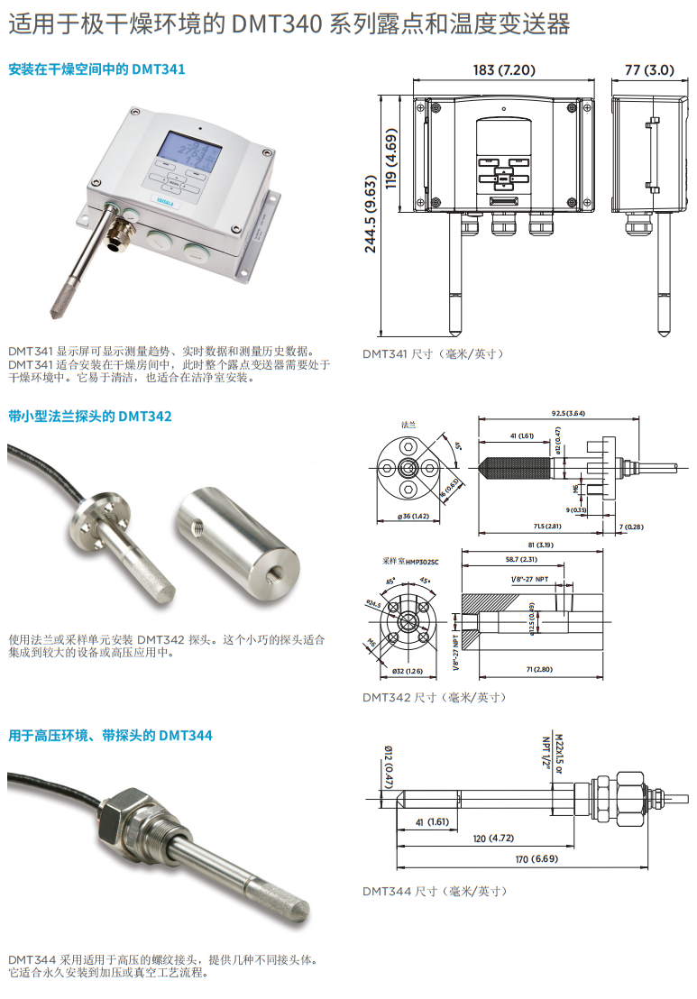 露点测量范围为-70...+80°C(-94 ... +176 °F),准确度为±2°C(±3.6°F)