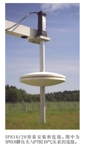 SPH10/20静压头容易安装、拆卸、维修和清洁——甚至在安装现场。维萨拉公司基于BAROCAP®传感器的PTB210数字气压表能够直接安装在SPH10/20静压头顶部。其它气压表可以通过导压管安装在顶部。